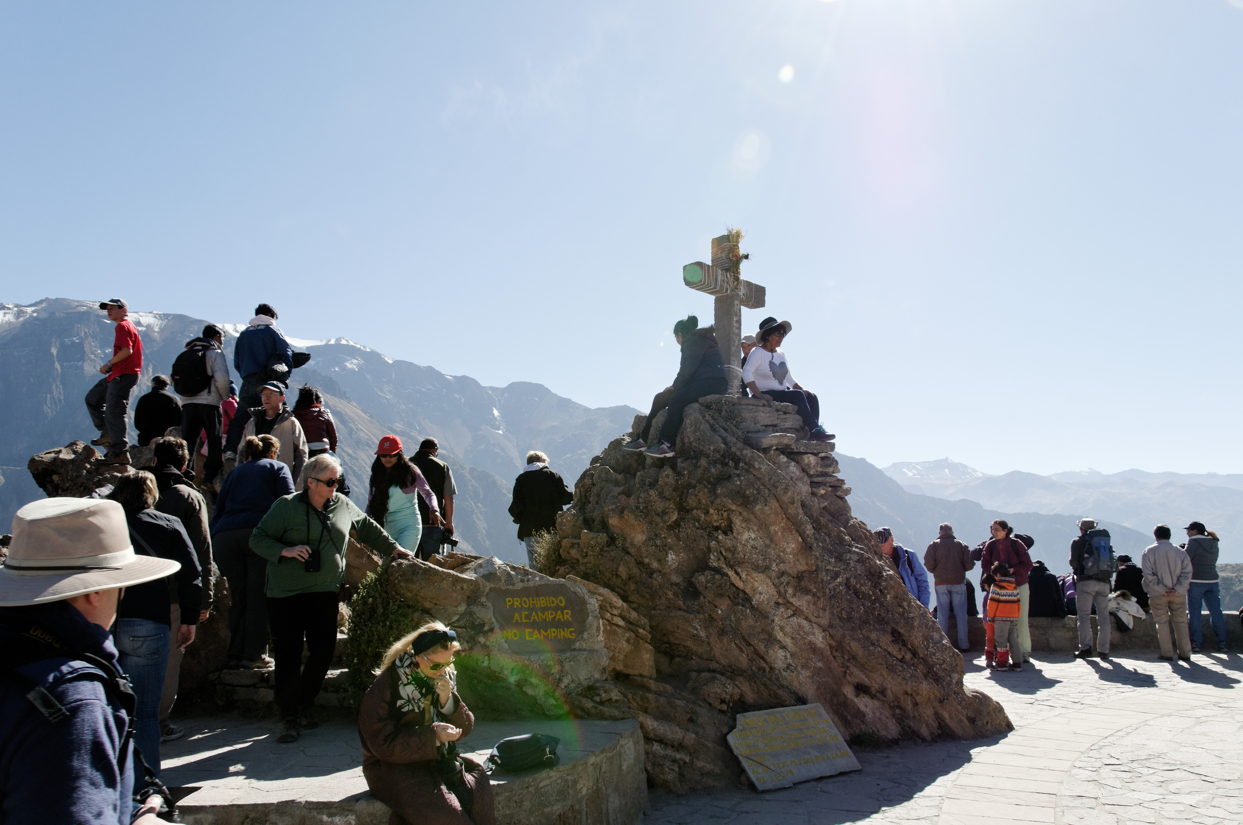 The tour consisted in breakfast in Chivay after 3 h trip. The road trip was scary and we could not sleep either, the van glass was frozen when we reached the top at, 4900 m. Breakfast was bread with jam and a bit of cheese with the mandatory mate de coca… a bit scarce and opened air place which was cooler than outside. Then we continued towards the Cruz del Condor for nearly 2 h.